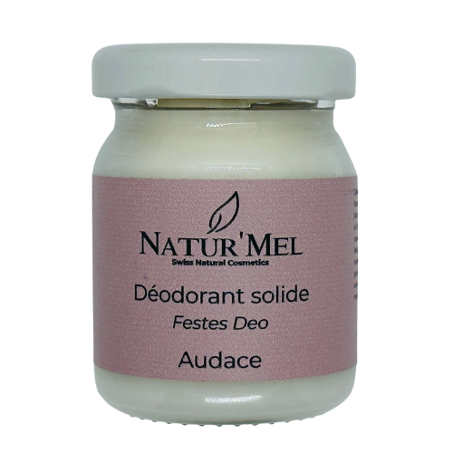 Die festen Deodorants von NaturMel enthalten keine Aluminiumsalze oder Alkohol. Sie sind in wiederverwendbaren Glasbehältern verpackt.