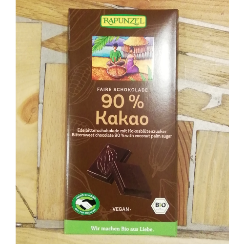 Kakao Edelbitterschokolade, mit Kokosblütenzucker, Kakaoanteil von 90%, Vegan, EU Bio zertifiziert