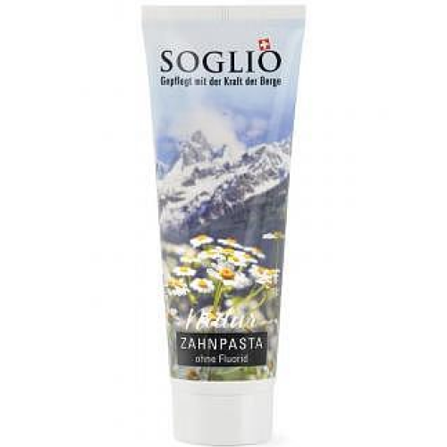 Die speziell für SOGLIO entwickelte Naturzahnpasta enthält einen Grüntee extrakt für die schonende Zahnhygiene. Der Kamillenextrakt pflegt zusätzlich das Zahnfleisch. Für das frische Aroma sorgen Pfefferminzöl und ein Süssholzextrakt.